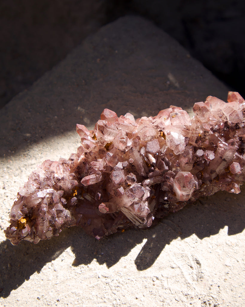 Sourced from the South Africa–Namibia border, Orange River Quartz gets its vibrant red and orange hues from natural hematite. Known for its sharp formations and composition, it’s a favorite among collectors.